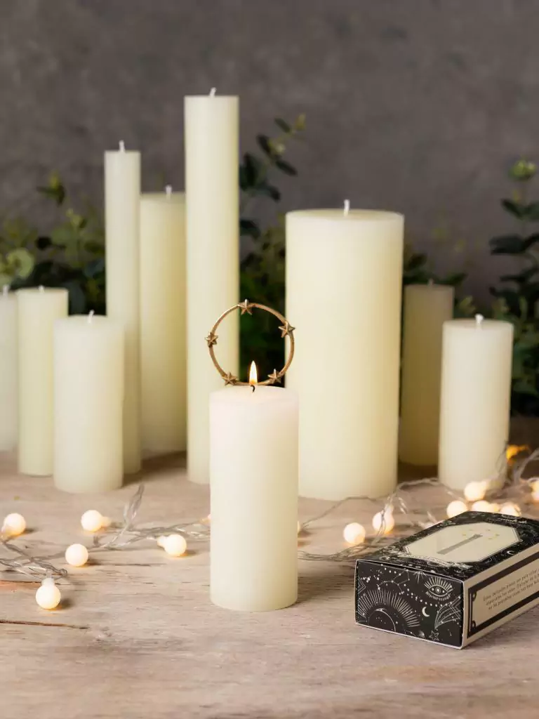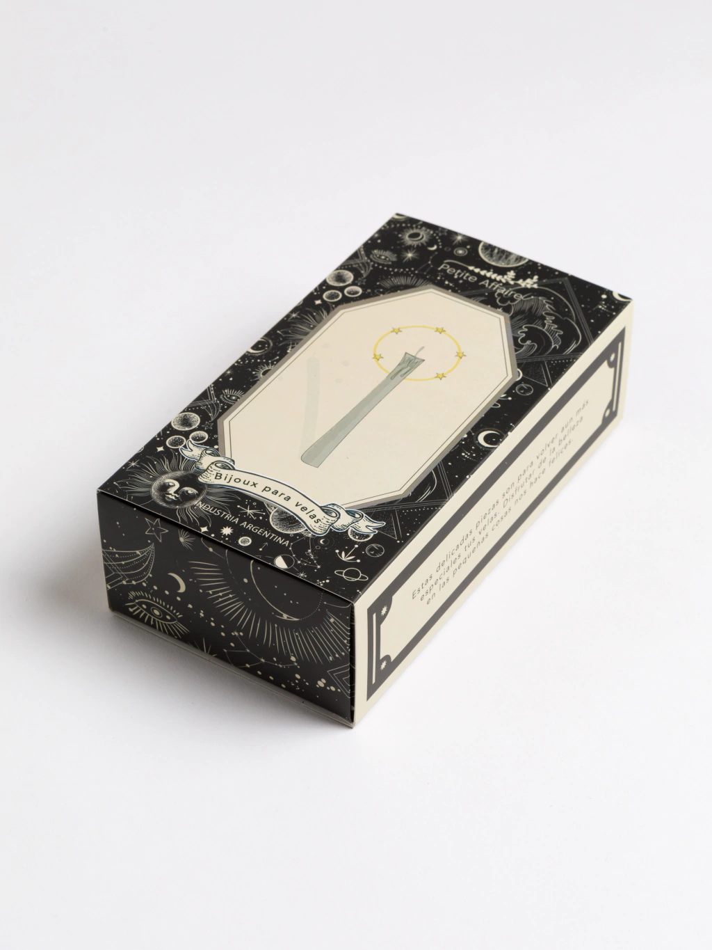 Esta propuesta delicada incluye un aurea estrellada que viste de manera hermosa la vela apagada o encendida.