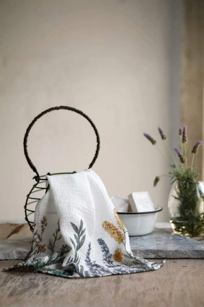 Toalla de invitados confeccionada en Baby Cotton 100% algodón con estampa de flores silvestre.