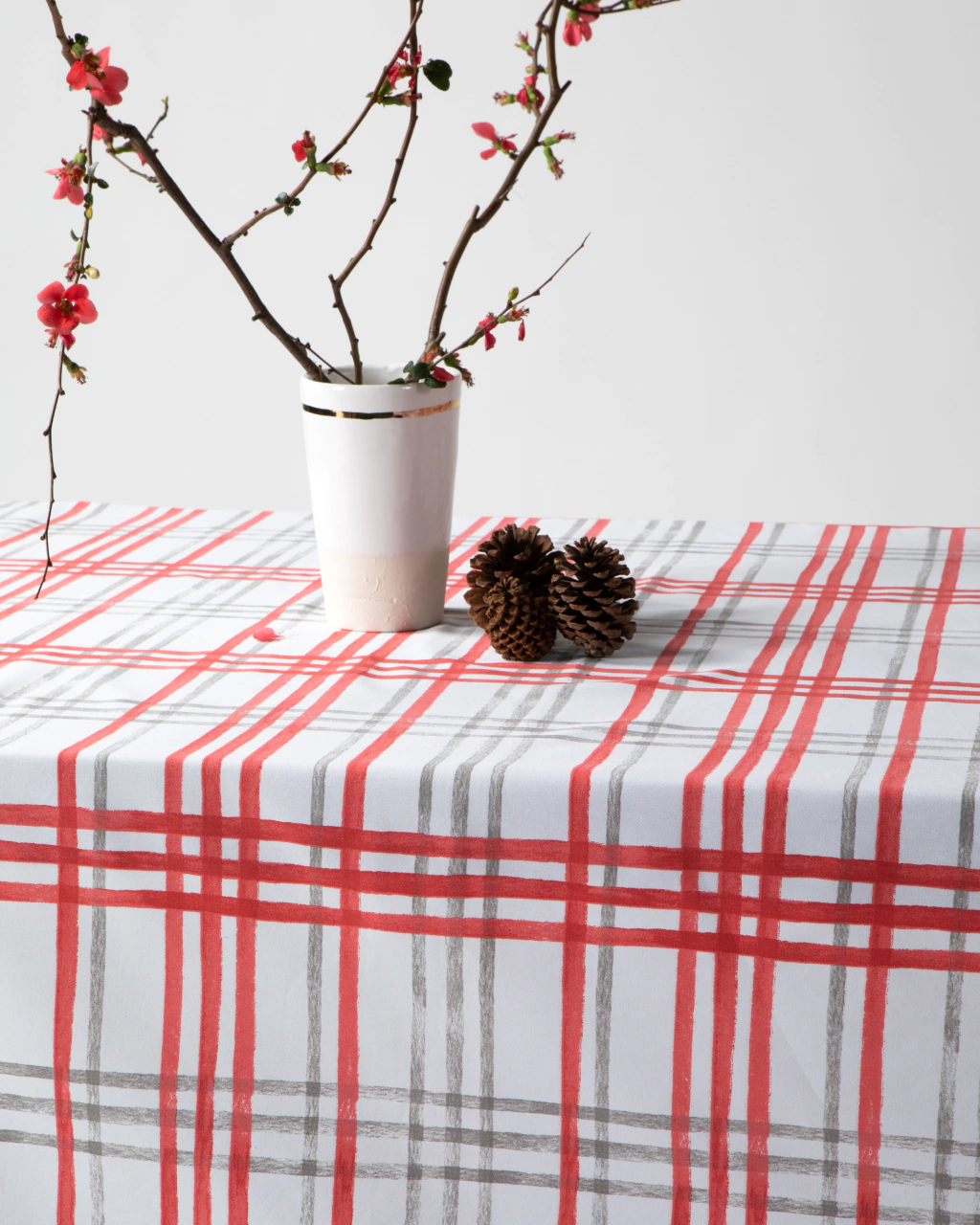 Esta estampa tipo vichy en color tostado lo hace ser un mantel atemporal, clásico y verátil. De género noble, suave al tacto, puede lavarse con facilidad.