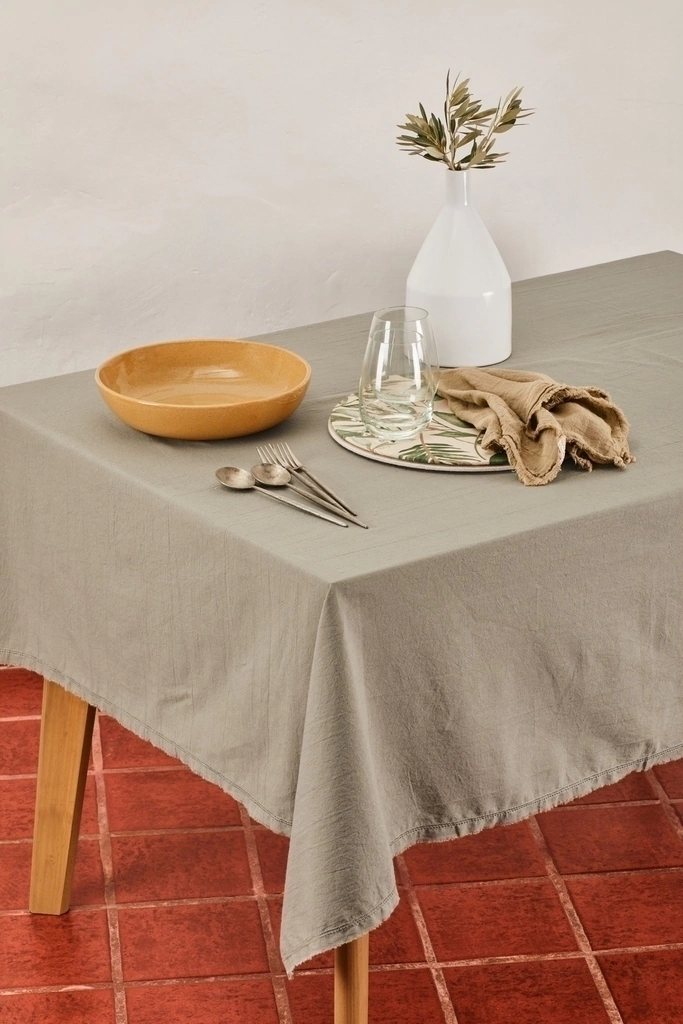 Este es un mantel canchero, descontracturado, con terminación de prelavado muy versátil y adaptable para diferentes ocasiones.