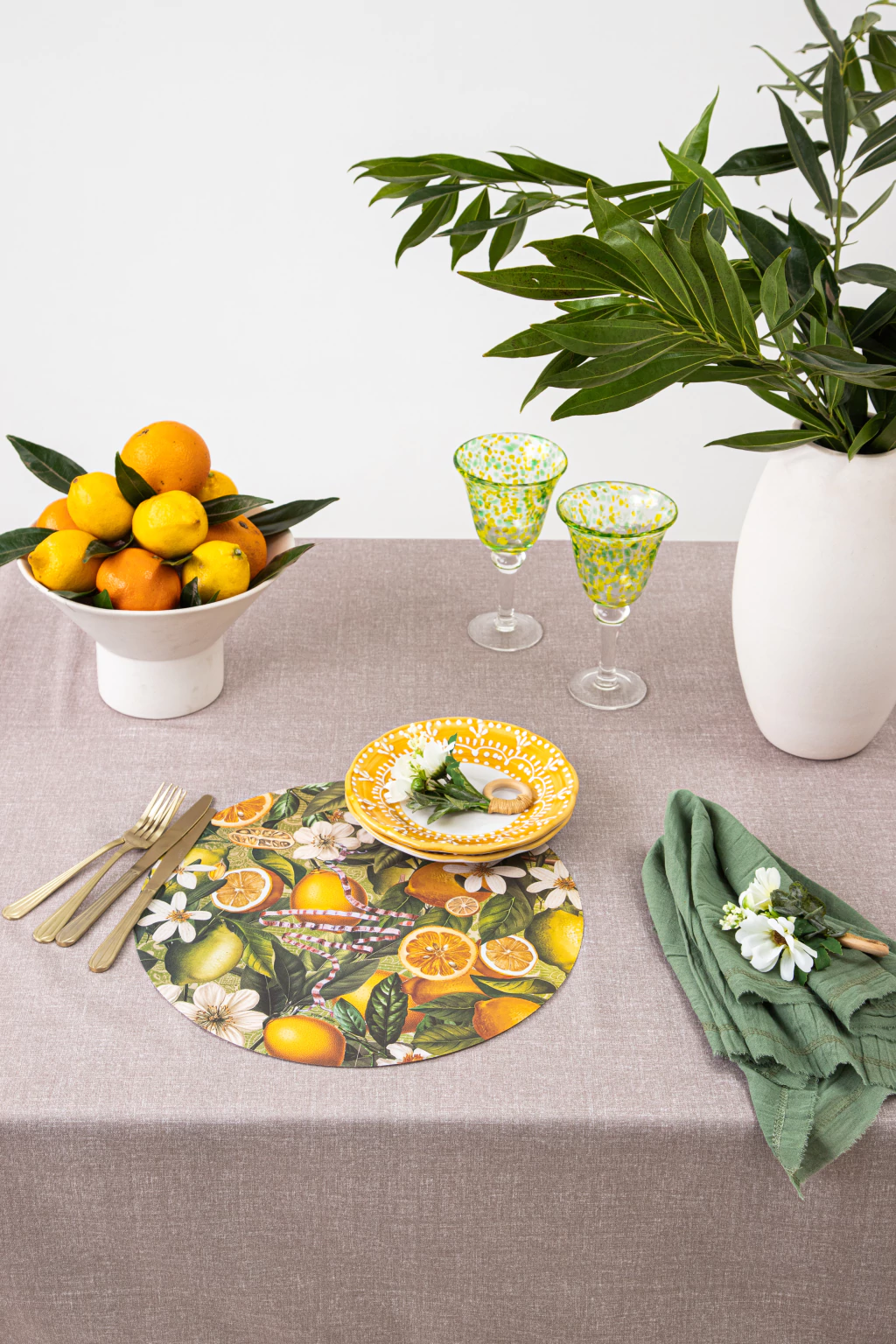 Este mantel es impermeable y se limpia fácilmente con un trapo húmedo o en lavarropas, preservando la intensidad de su color tostado con trama y asegurando un secado rápido.