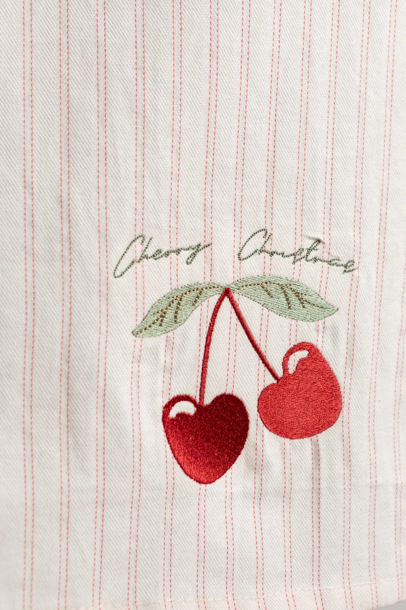Bordado delicado de cerezas + frase “Cherry Christmas” 🍒