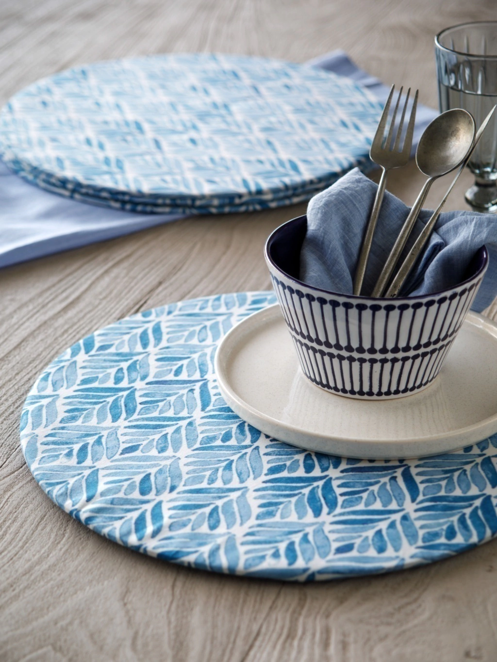 Con estampa que remite a géneros de la india, esta propuesta en azules es alegre y permite montar mesas hermosas todos los días.