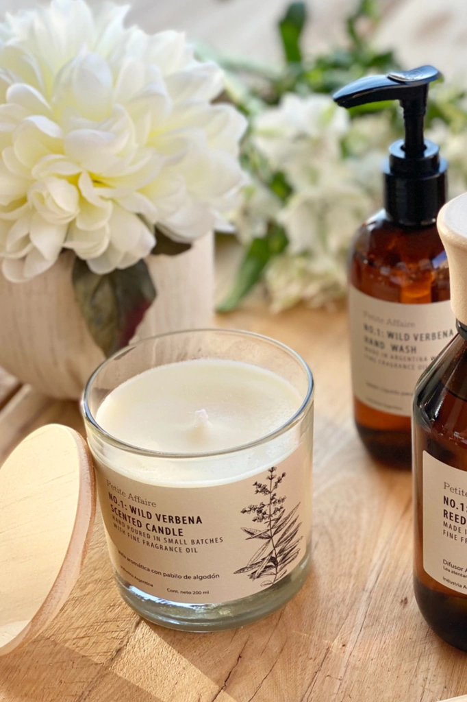 Vela aromática de cera vegetal premium cuya fragancia fresca y vigorizante conquista con su inconfundible aroma a verbena. De aroma cítrico intenso perfuma el hogar de manera maravillosa. Es el aroma insignia de Petite Affaire.
